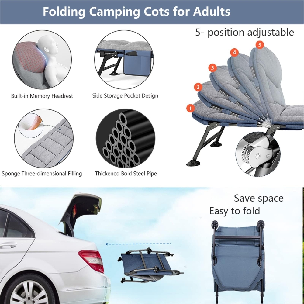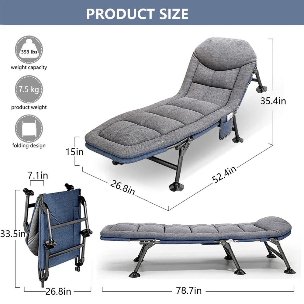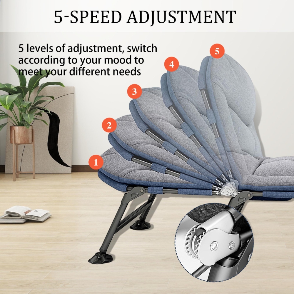 4. 易于安装和携带:无需组装。这款成人日光躺椅可在几秒钟内轻松展开或折叠,并可收纳于随附的收纳袋中。折叠后分为三部分,方便存放。