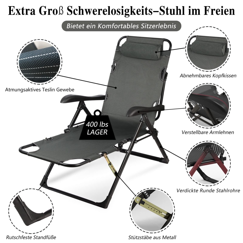 带倾斜功能的花园椅 – 7档可调节靠背和脚踏,让您可以精确调节坐姿和躺姿,从平躺到直立。无论是直立阅读、略微倾斜放松,还是完全平躺,