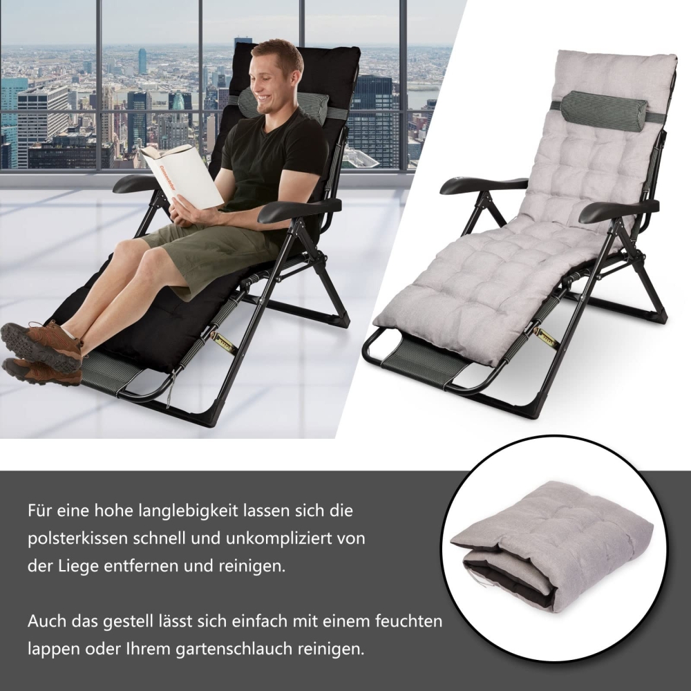 带软垫的折叠式阳台躺椅 – 这款带软垫的日光躺椅提供舒适的柔软触感和额外的舒适体验。天气温暖时,可轻松取出可拆卸坐垫,让透气面料