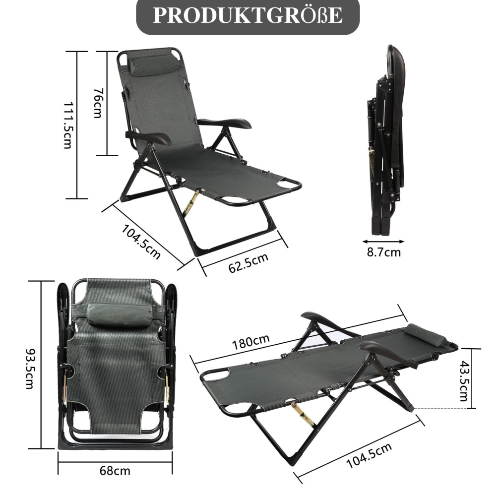 节省空间的折叠式花园躺椅 – 这款轻便的折叠式日光躺椅可轻松折叠,方便收纳。无论是在花园、阳台、露营地还是阳光房,这款花园躺椅都是