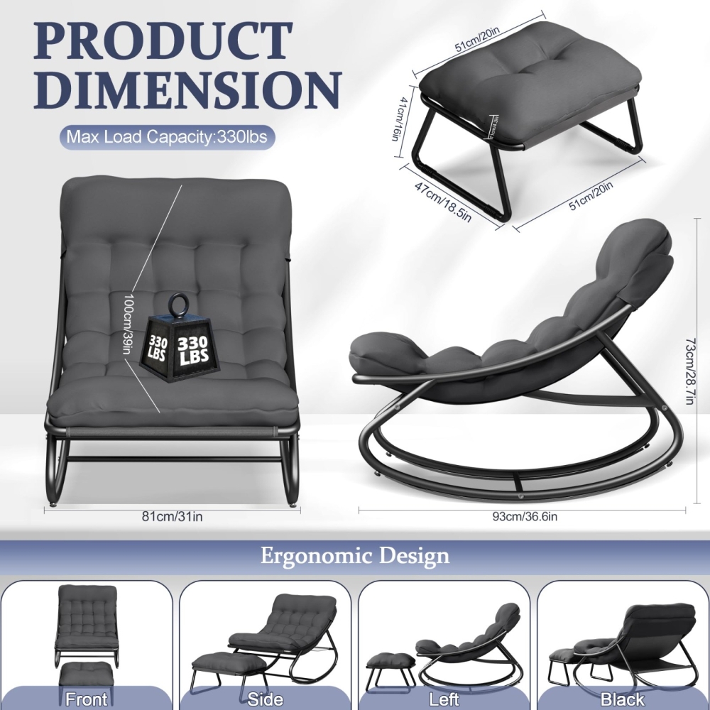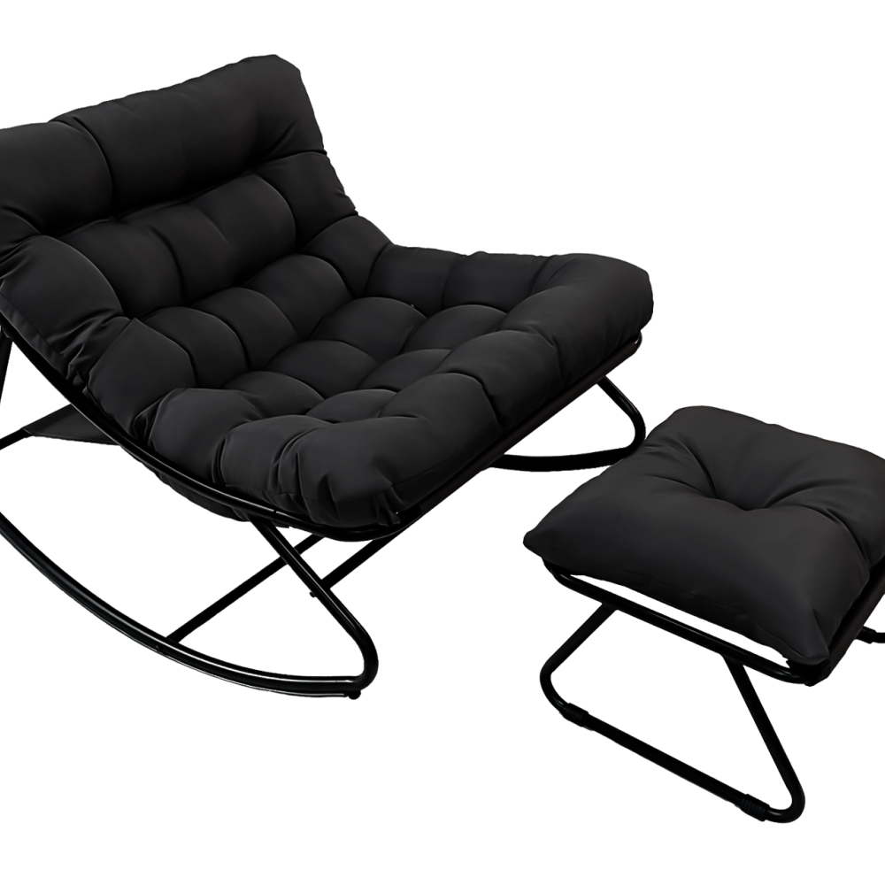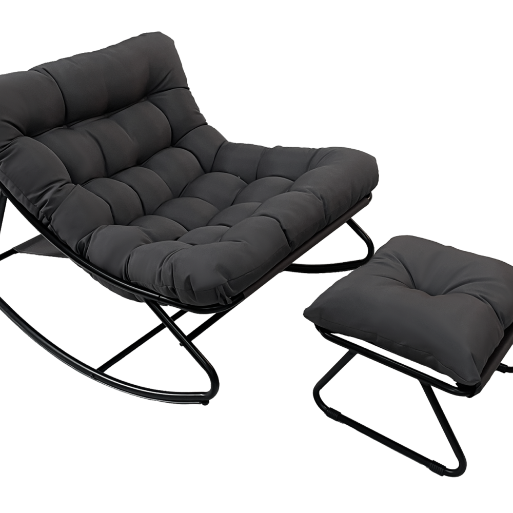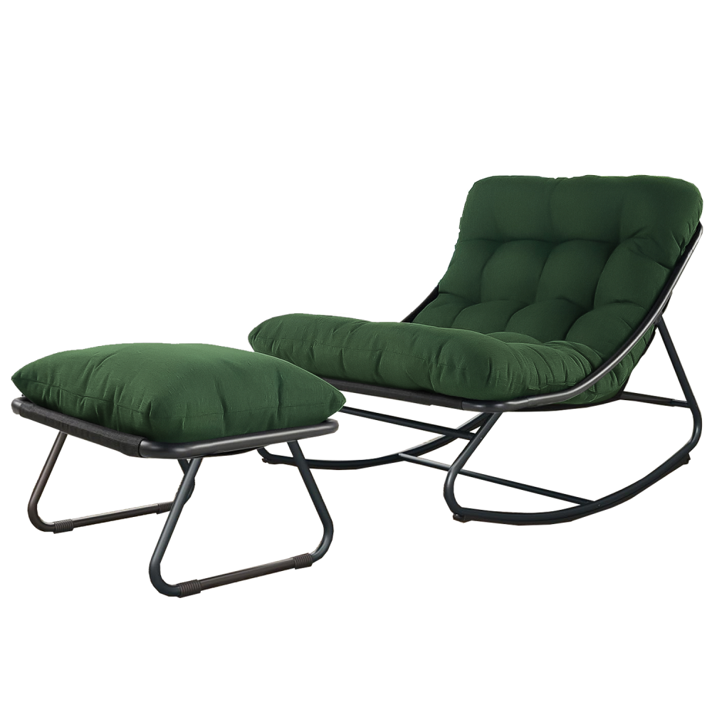 多功能脚凳:一体式脚凳配有厚实的软垫,为您的双脚提供额外支撑。它不仅是放松休憩的理想之选,还可以作为额外的座椅。有了这款摇椅和脚凳,