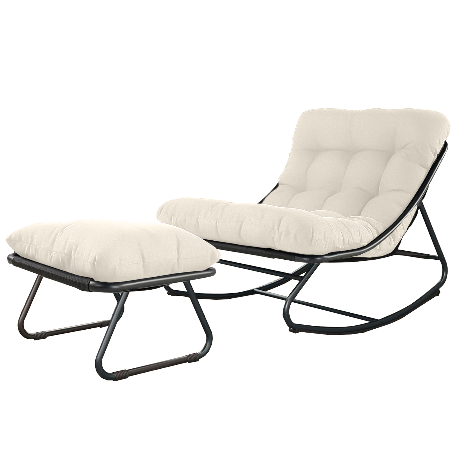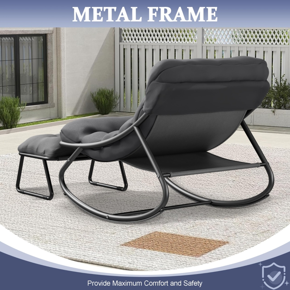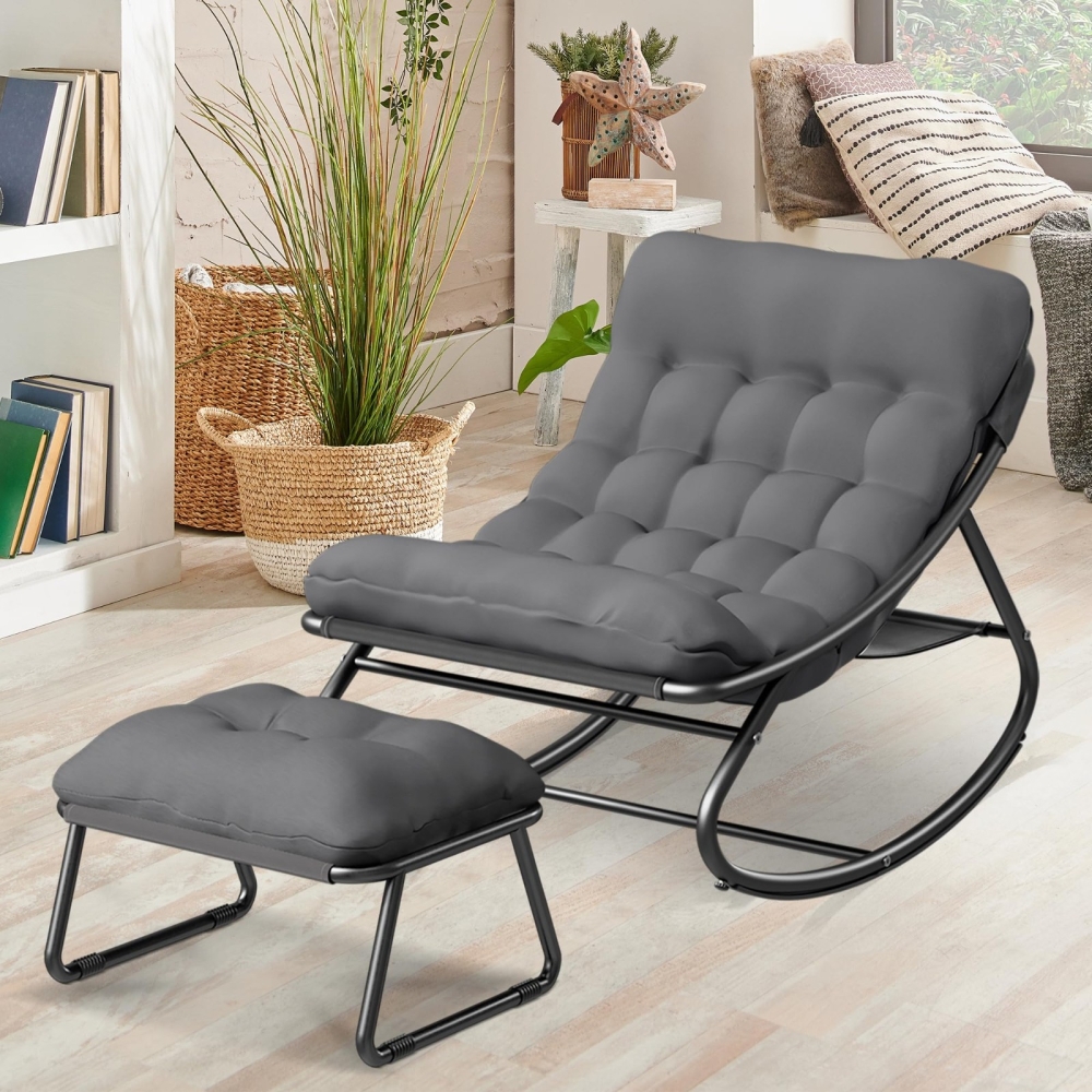 多功能脚凳:一体式脚凳配有厚实的软垫,为您的双脚提供额外支撑。它不仅是放松休憩的理想之选,还可以作为额外的座椅。有了这款摇椅和脚凳,