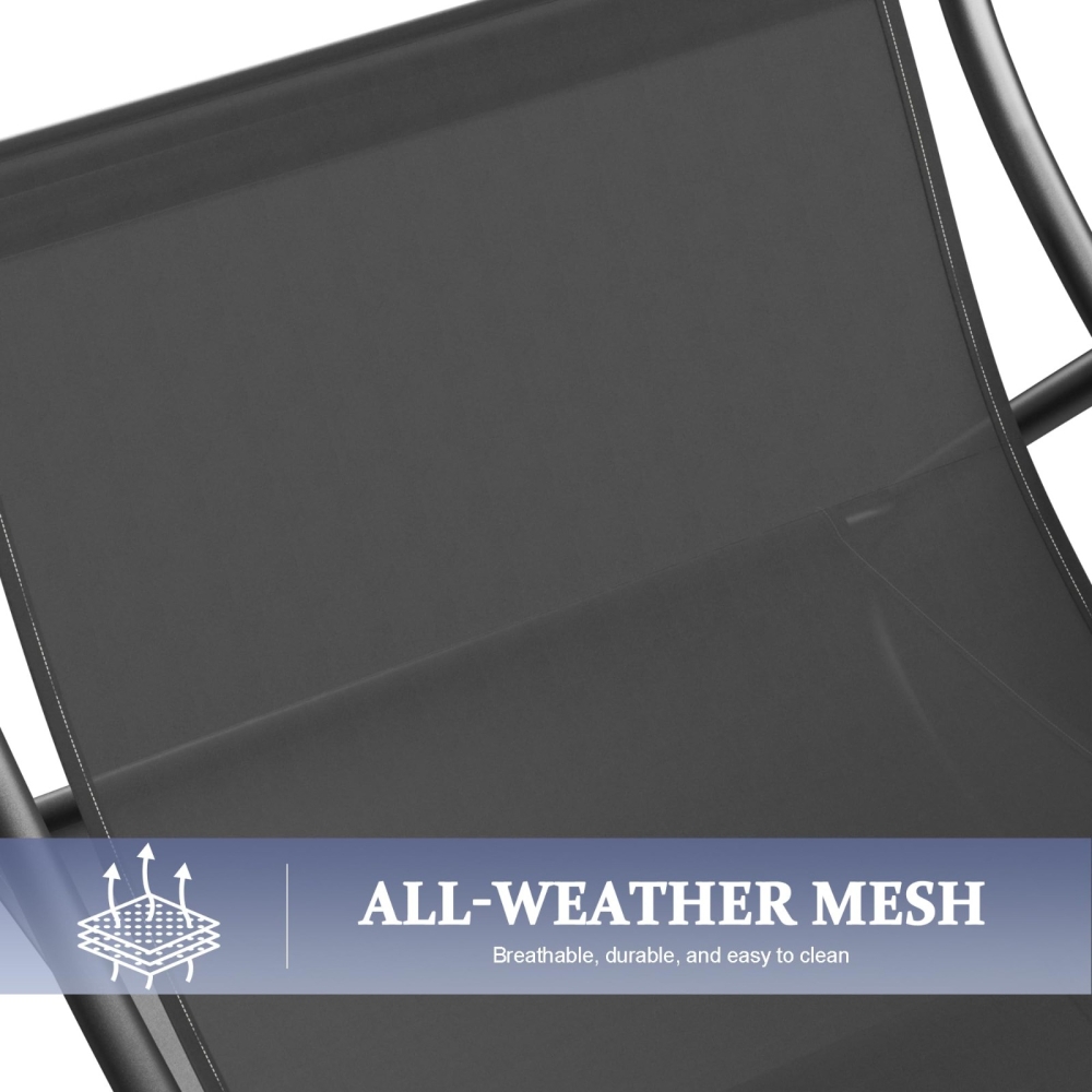 坚固耐用的钢架:摇椅采用防紫外线和防锈钢架结构,最大承重可达140公斤。底部塑料滑轮可保护地板免受刮擦,并降低使用时的噪音。