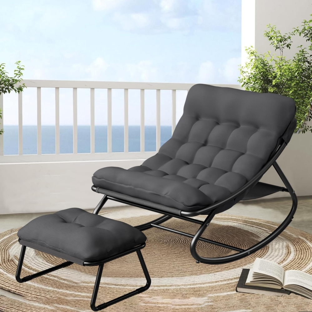 舒适柔软的衬垫:这款带脚凳的摇椅采用11厘米厚的衬垫,填充高品质高密度泡沫,即使长时间坐卧也能确保无与伦比的舒适度,并防止变形。