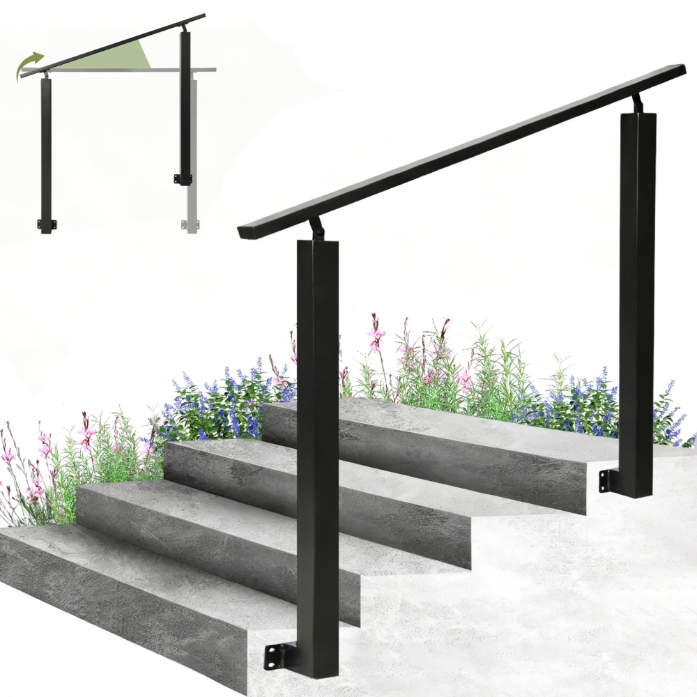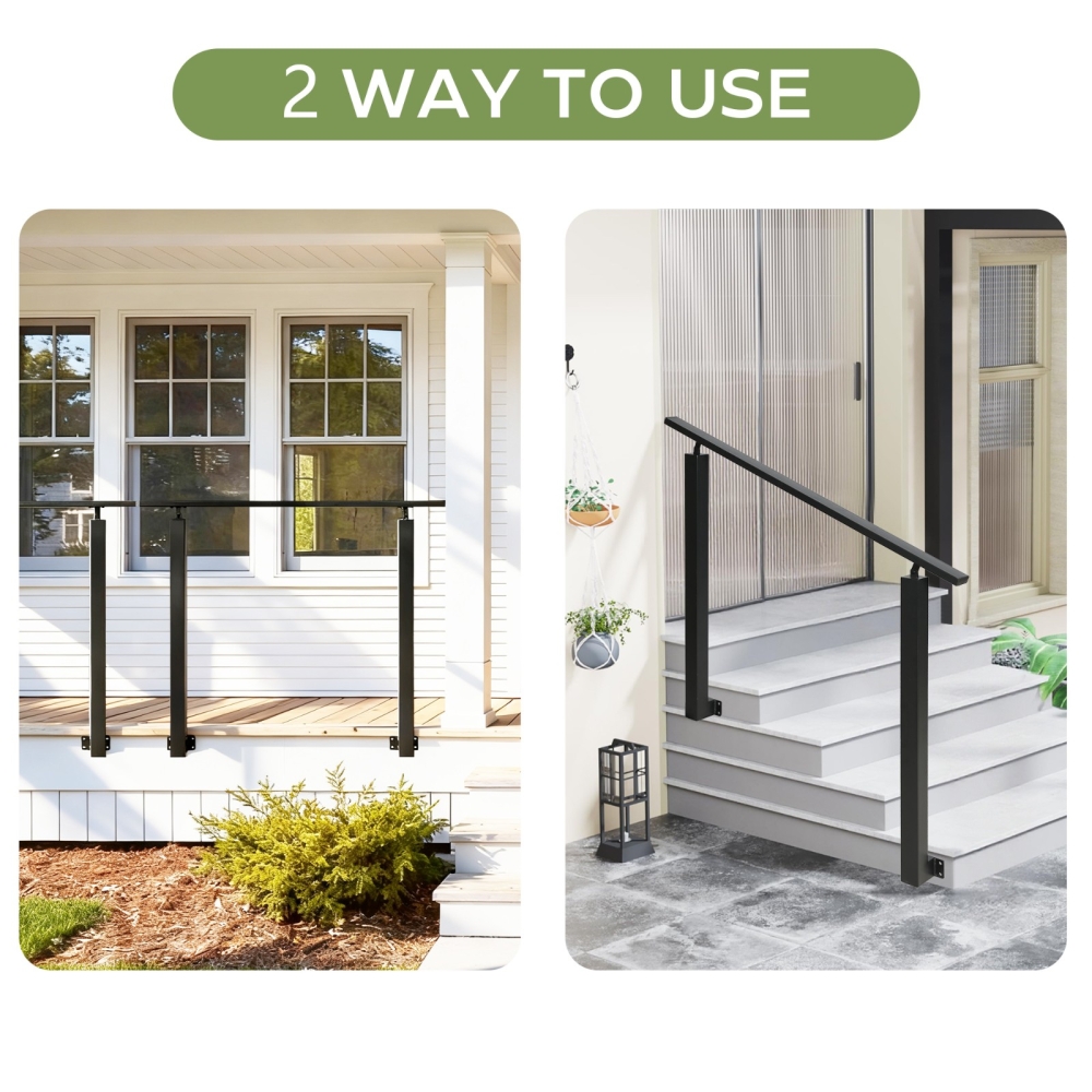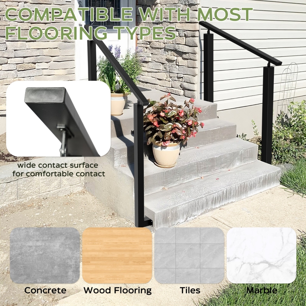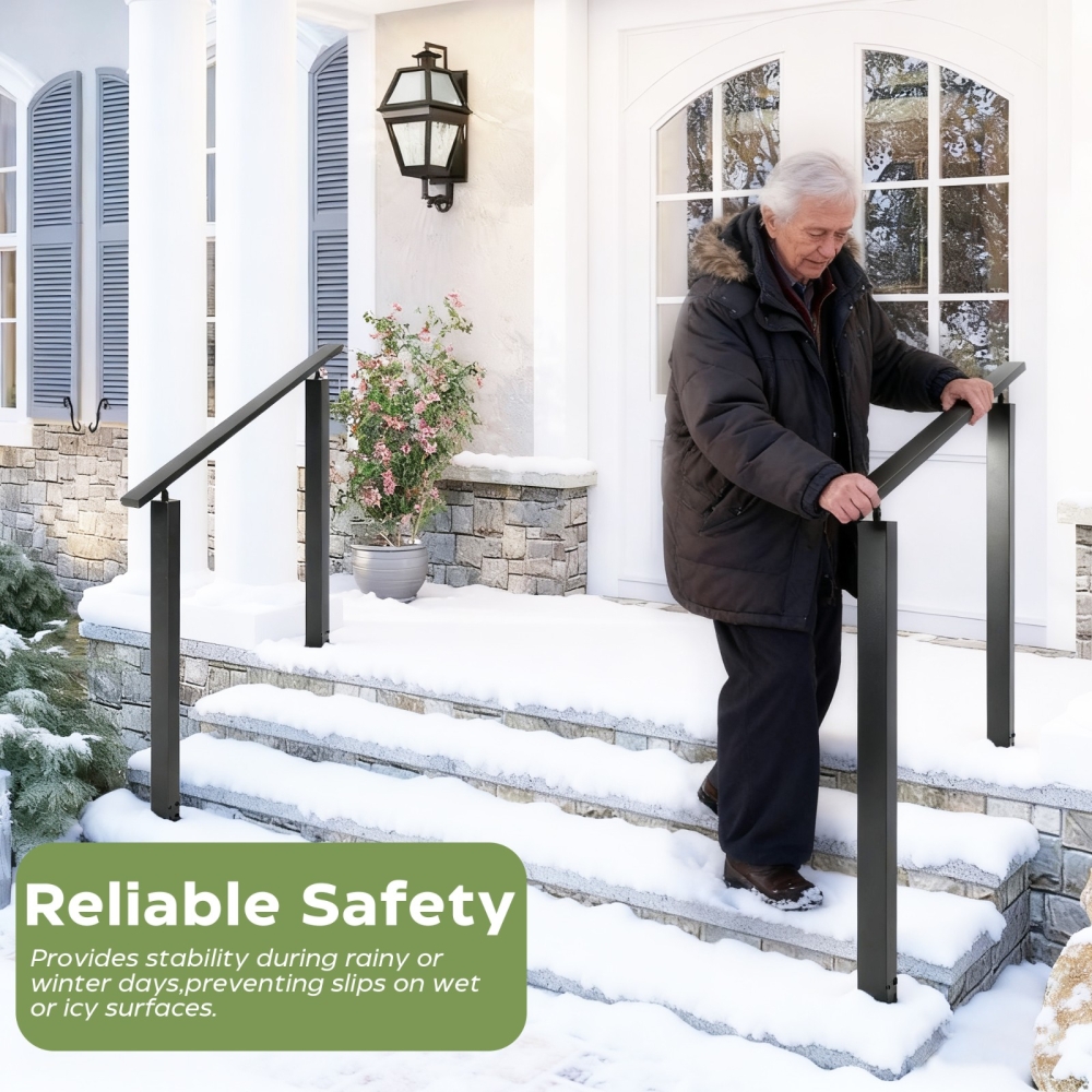 【坚固耐用材质】这款户外楼梯扶手采用优质铁材制成,稳固耐用。黑色粉末涂层保护金属,减少剥落、刮擦和褪色,使扶手具有良好的耐候性,