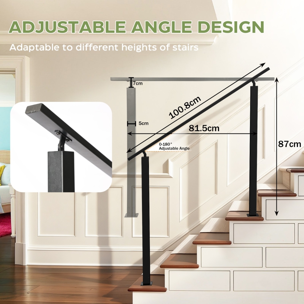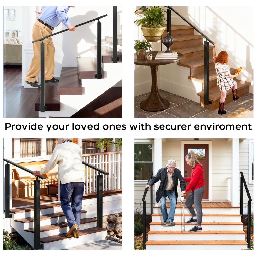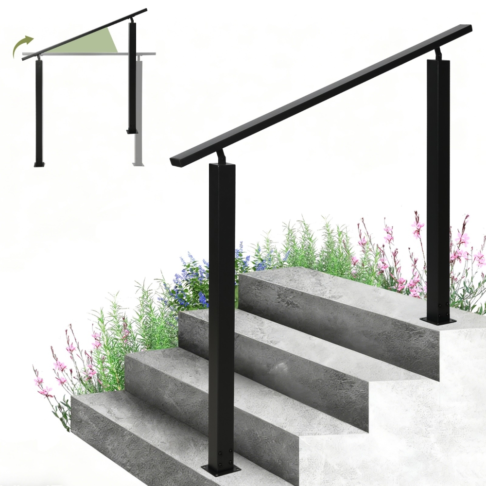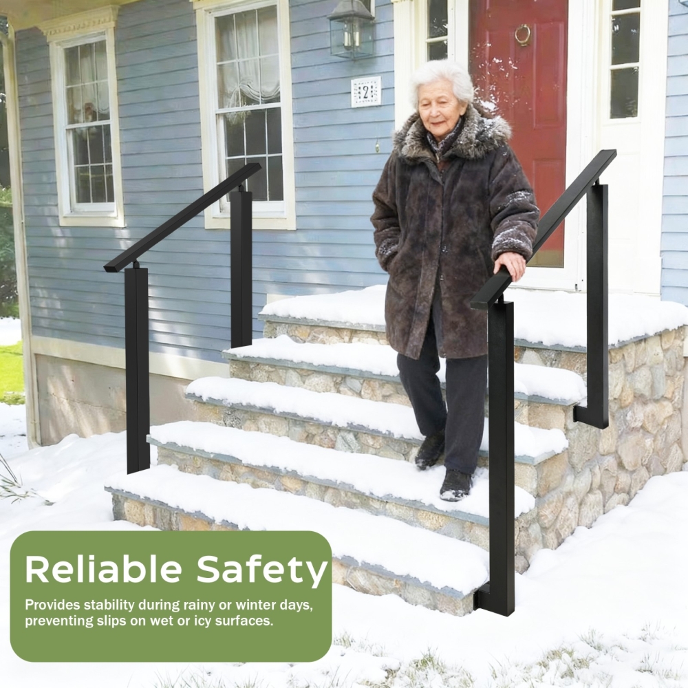 【坚固耐用材质】这款户外楼梯扶手采用优质铁材制成,稳固耐用。黑色粉末涂层保护金属,减少剥落、刮擦和褪色,使扶手具有良好的耐候性,