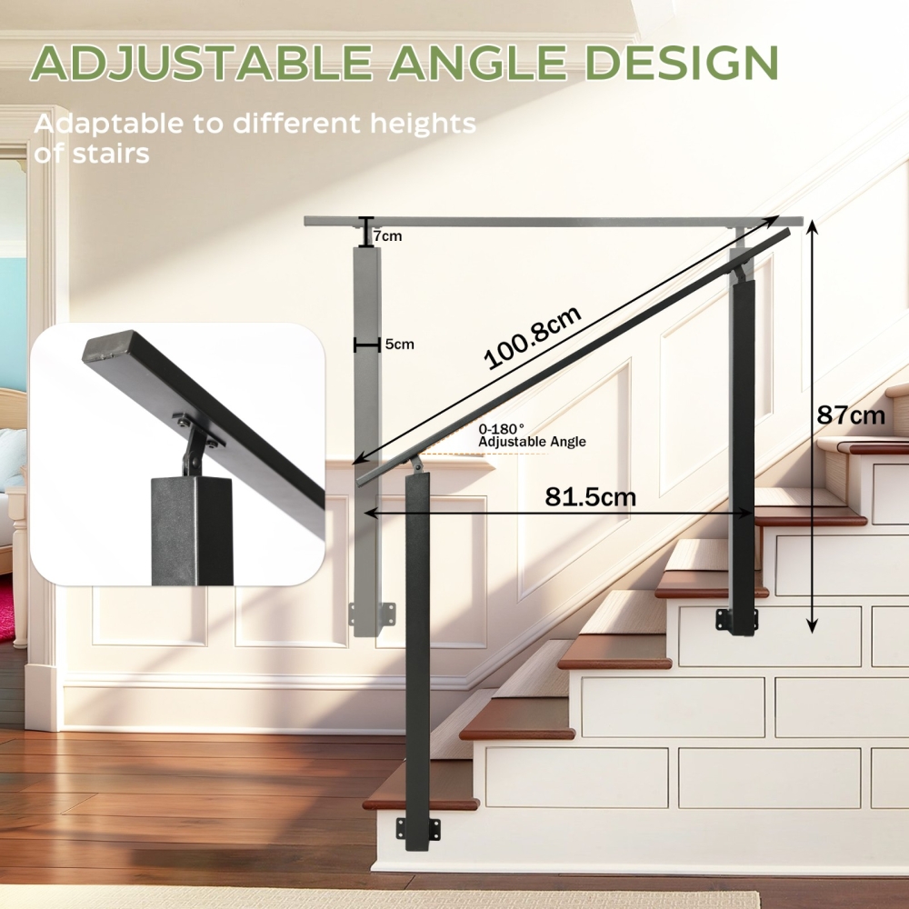 【角度可调】扶手支架采用简易的连接机构,可根据楼梯坡度进行个性化调节,您可以将其水平或倾斜安装,以满足不同的高度需求。可调节角度,