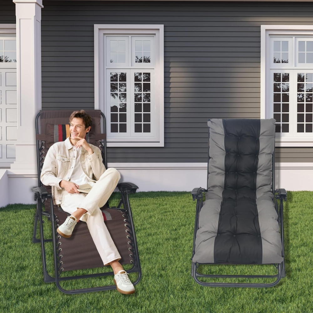 【优质材料】我们的折叠式花园躺椅设计美观,采用优质涤纶面料制成——这种面料舒适透气、坚韧耐用,且不易褪色。加厚的框架设计使其经久
