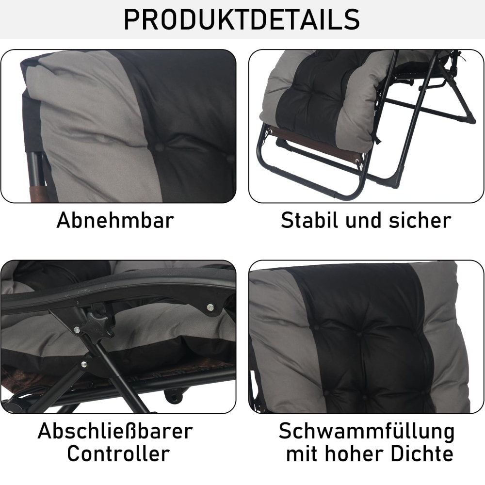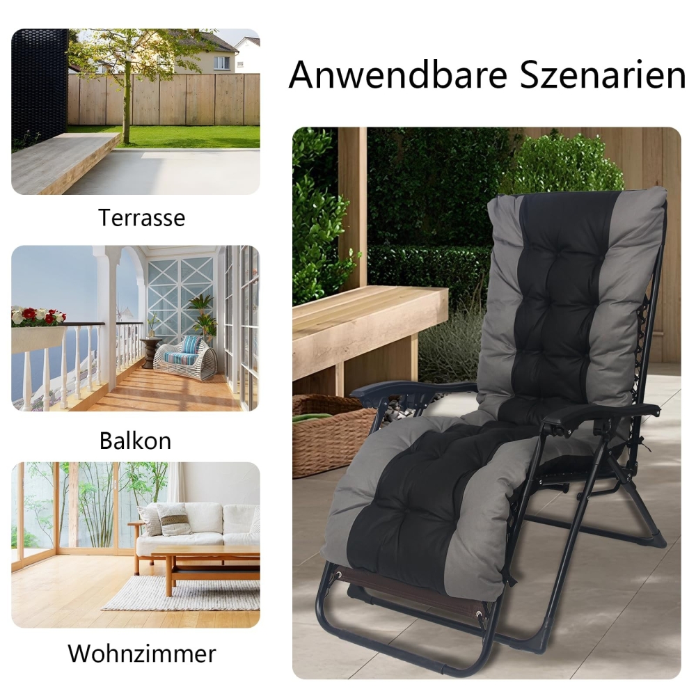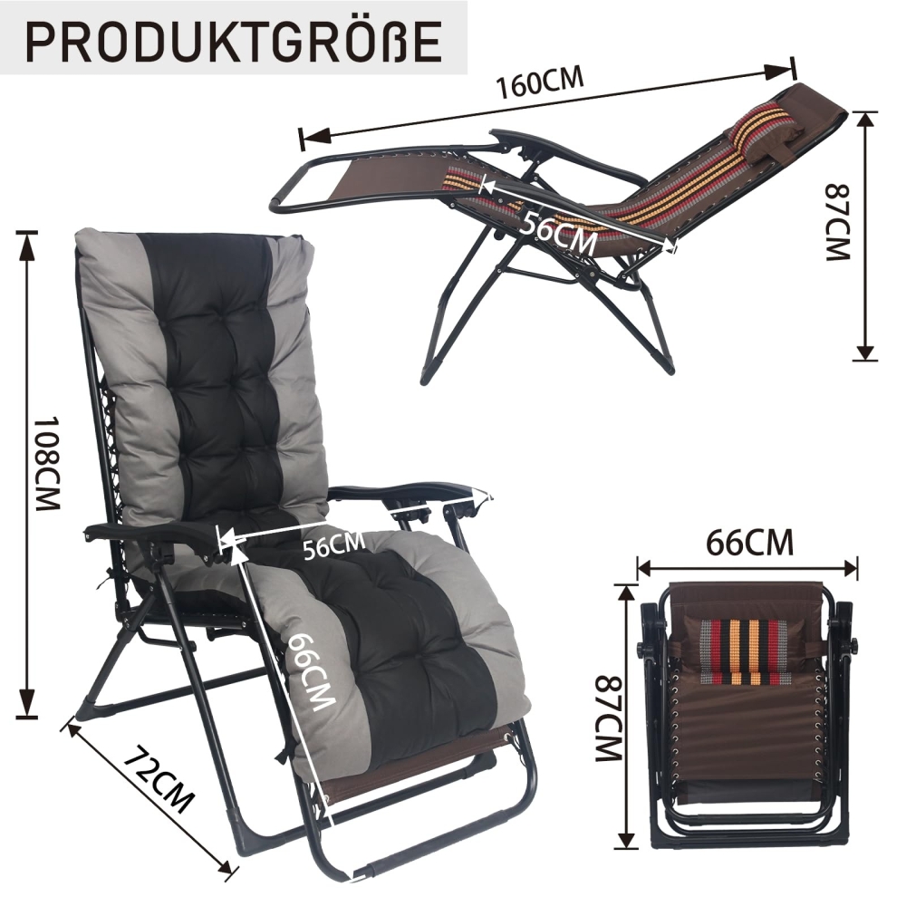 【实用设计】这款花园躺椅非常实用!可拆卸的杯架方便您随时取用饮品,可调节的头枕垫则提供额外的舒适感。防滑脚垫有效防止躺椅在使用
