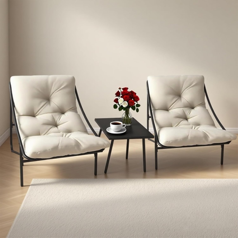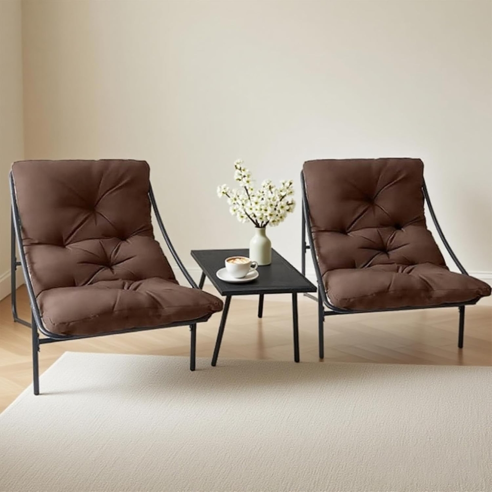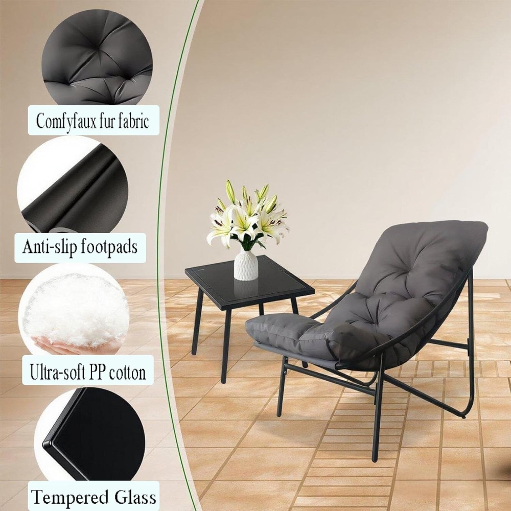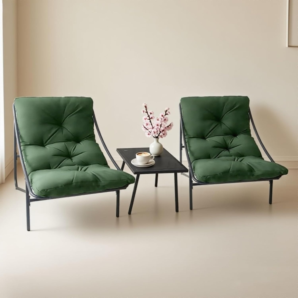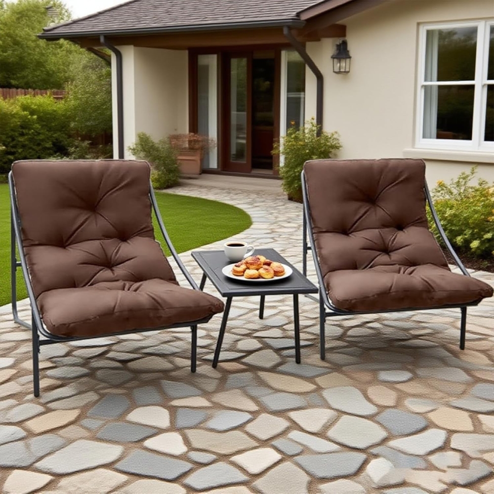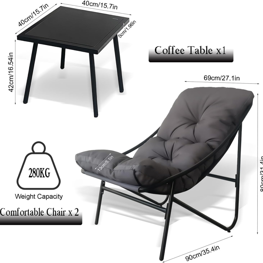 柔软坐垫:三件套花园椅的坐垫采用优质牛津布面料,具备抗褪色与抗撕裂特性;填充超柔软PP棉,兼具优异回弹性与强支撑力。