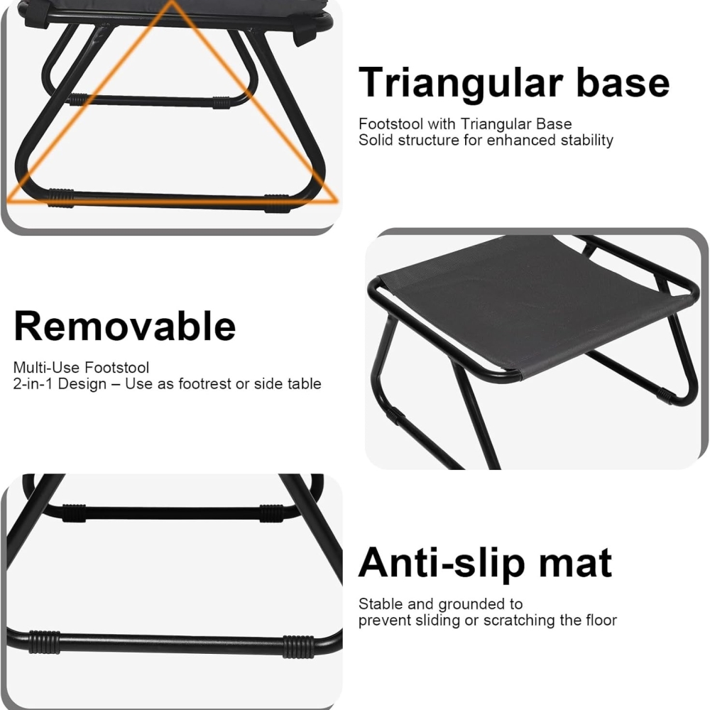 高稳定性和安全性 - 鞋凳、脚凳、扶手椅软垫脚凳:坚固的金属脚确保了稳定性和耐用性。底部防滑设计可提高安全性。