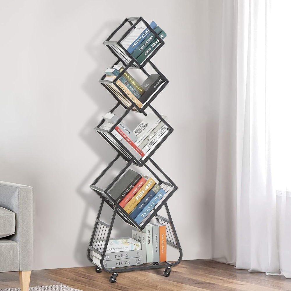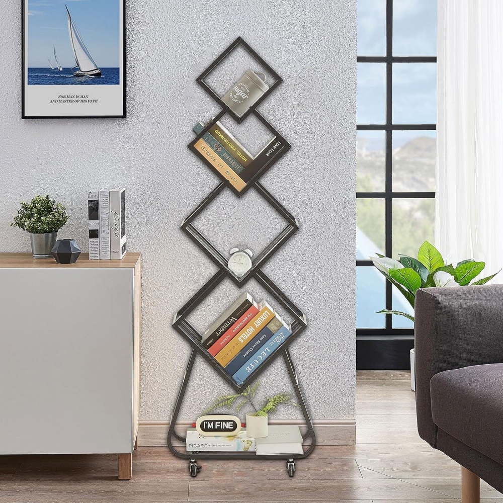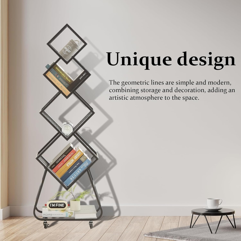 多功能用途:这款立式书架满足多样化需求。无论是节省空间的书籍收纳,还是实用化的收藏品展示,这款储物架将时尚设计与极致