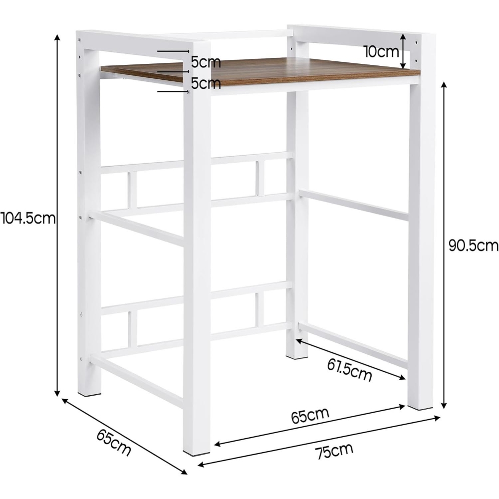 洗衣机上方置物架:整体尺寸 高104.5 x 宽75 x 深65 厘米。置物架底部留有空间(宽65 x 深61.5 x 高90.5-102 厘米),因此可以放置在大多