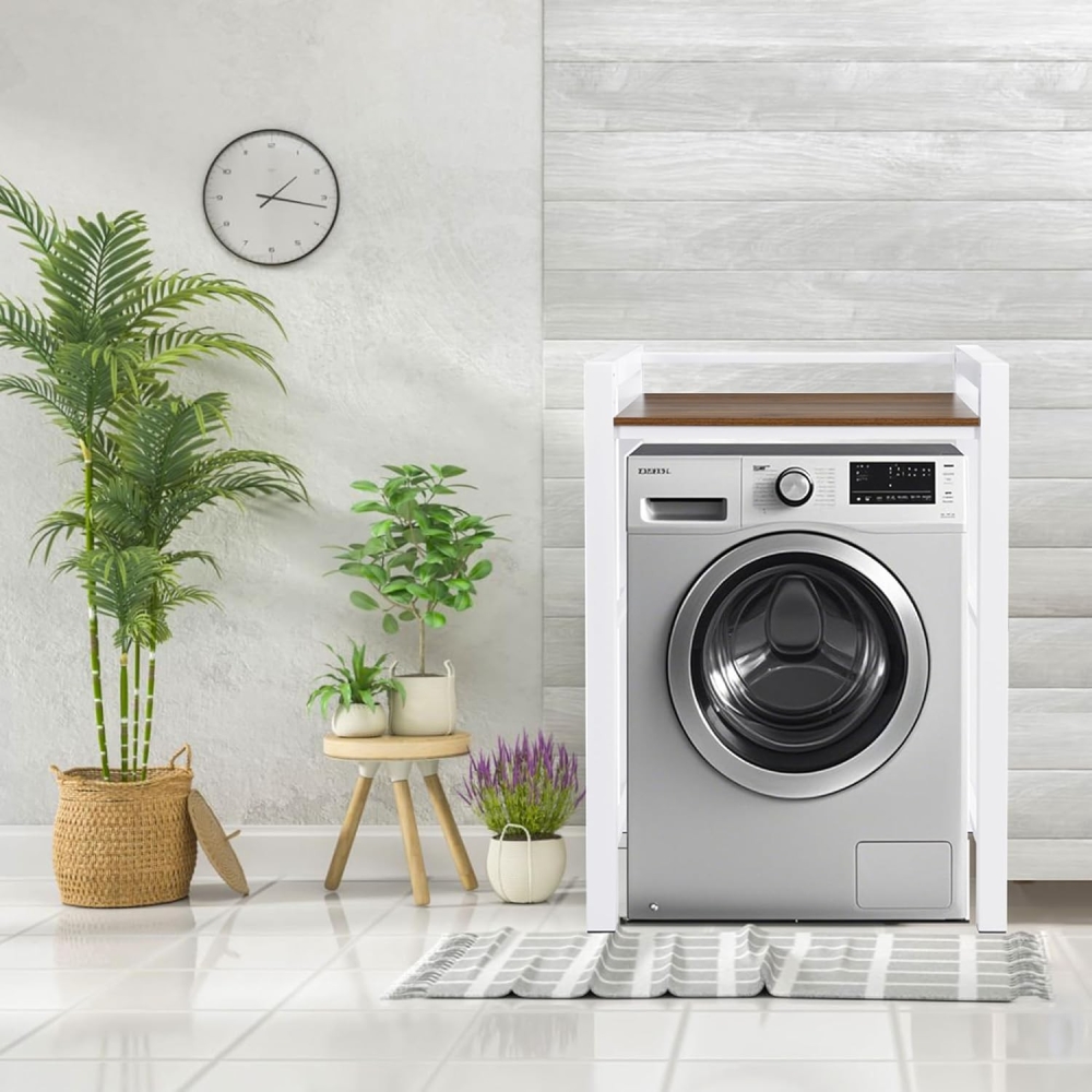 实用美观:这款洗衣机置物架时尚简约的设计不仅提供充足的储物空间,还能提升您家居的整体美感。这款烘干机架可放置在洗衣房、客厅、