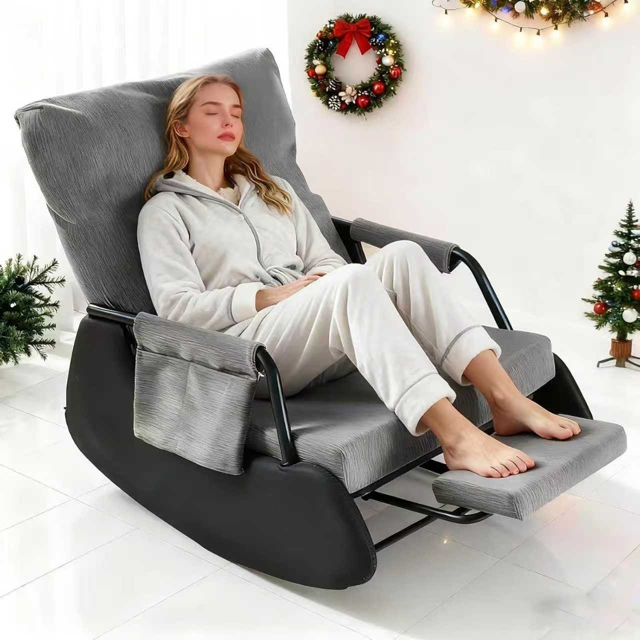 【灵活调节】这款摇椅的靠背可灵活调节至三种不同位置,方便您在坐姿和躺姿之间切换,无论是作为客厅摇椅还是其他休闲场所,