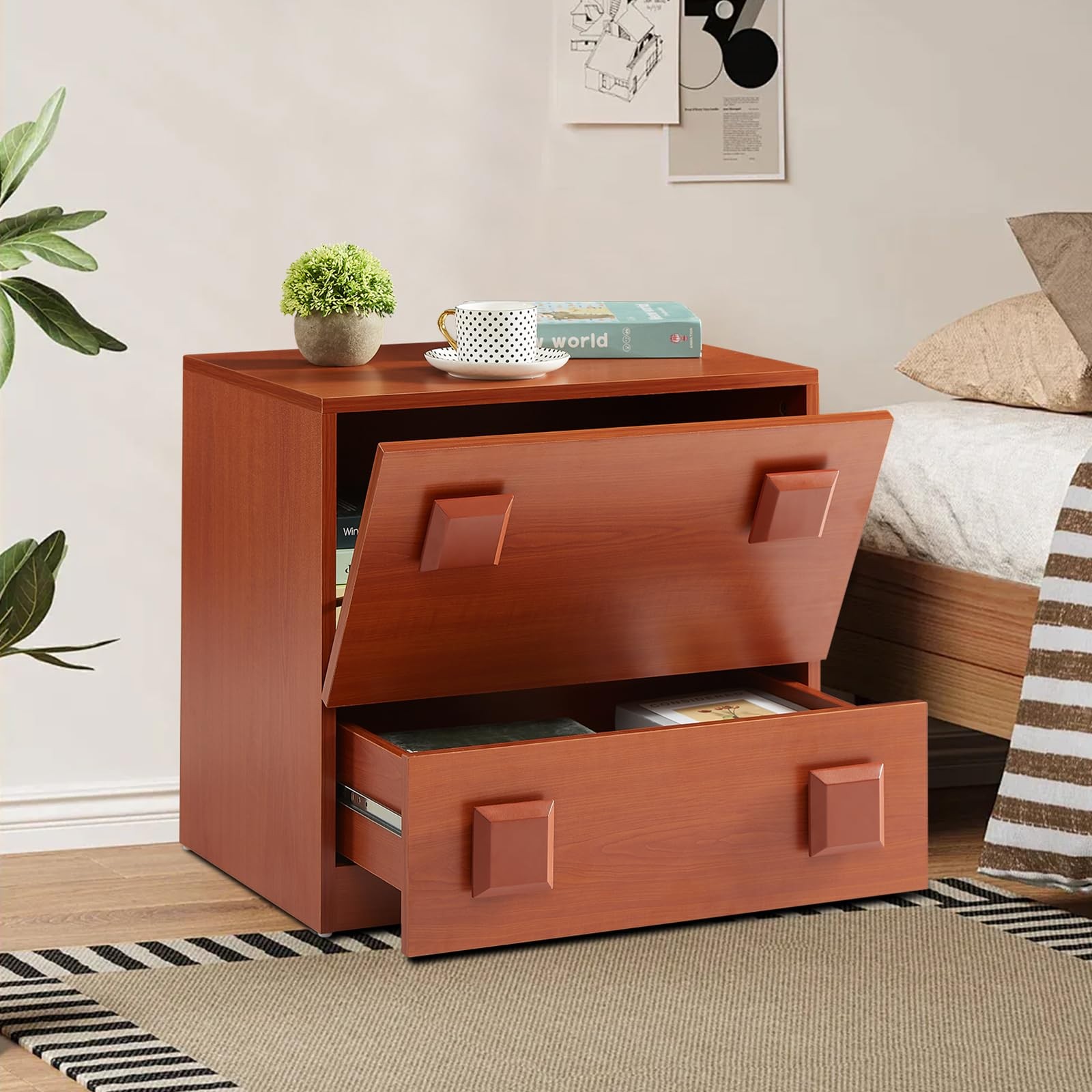 宽敞的储物空间:这款抽屉式五斗橱在狭小的空间内提供了充足的空间,是卧室五斗橱或走廊五斗橱的理想选择。