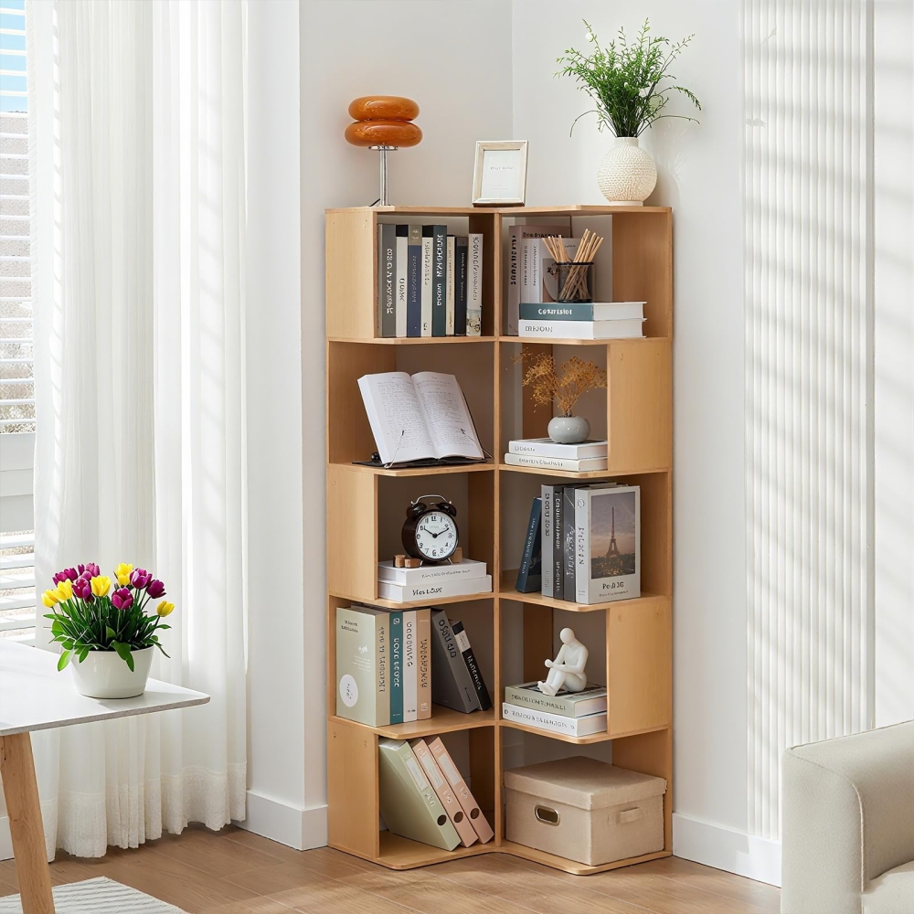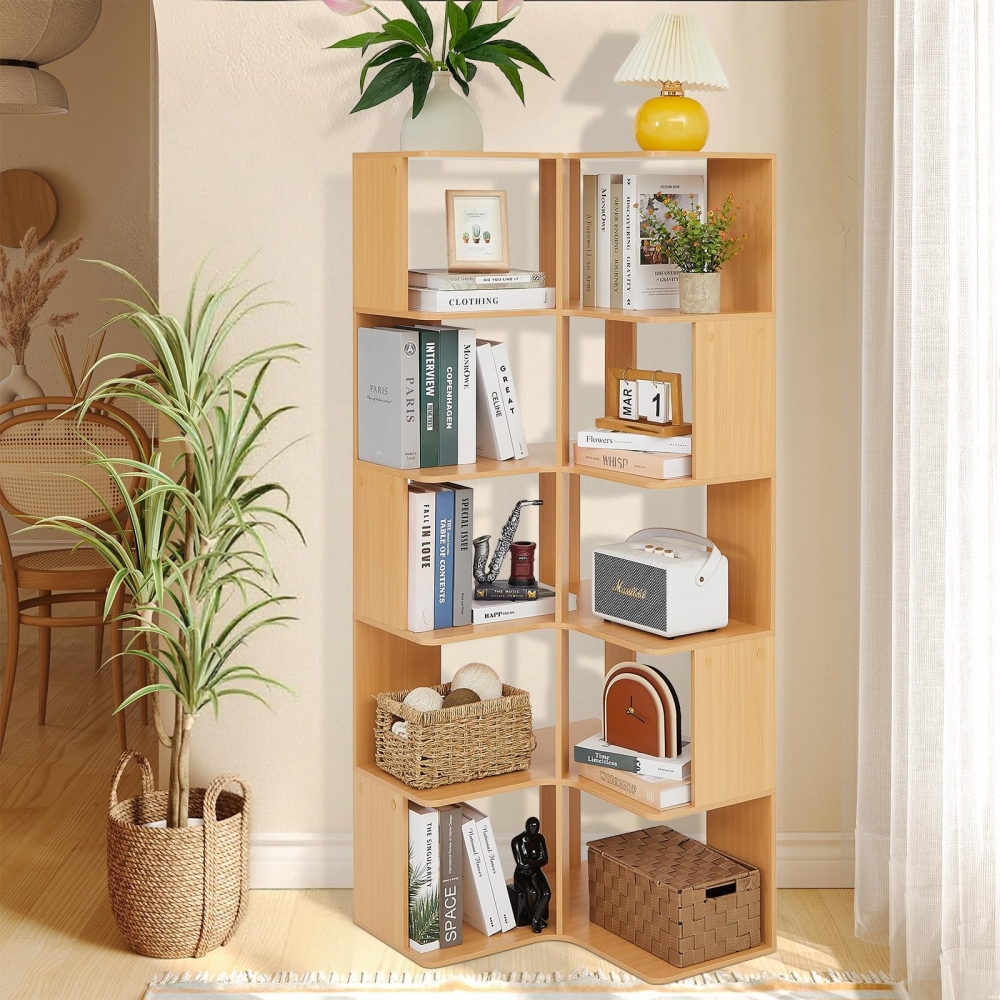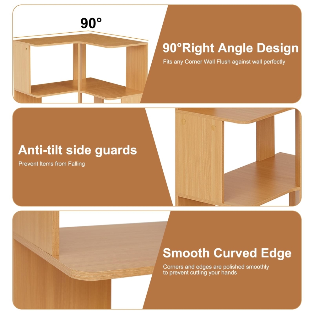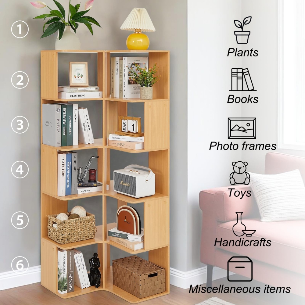 储物:L形储物架甚至可以完美利用房间最窄的角落!大型开放式书架有6层宽敞的地板,为书籍、装饰、