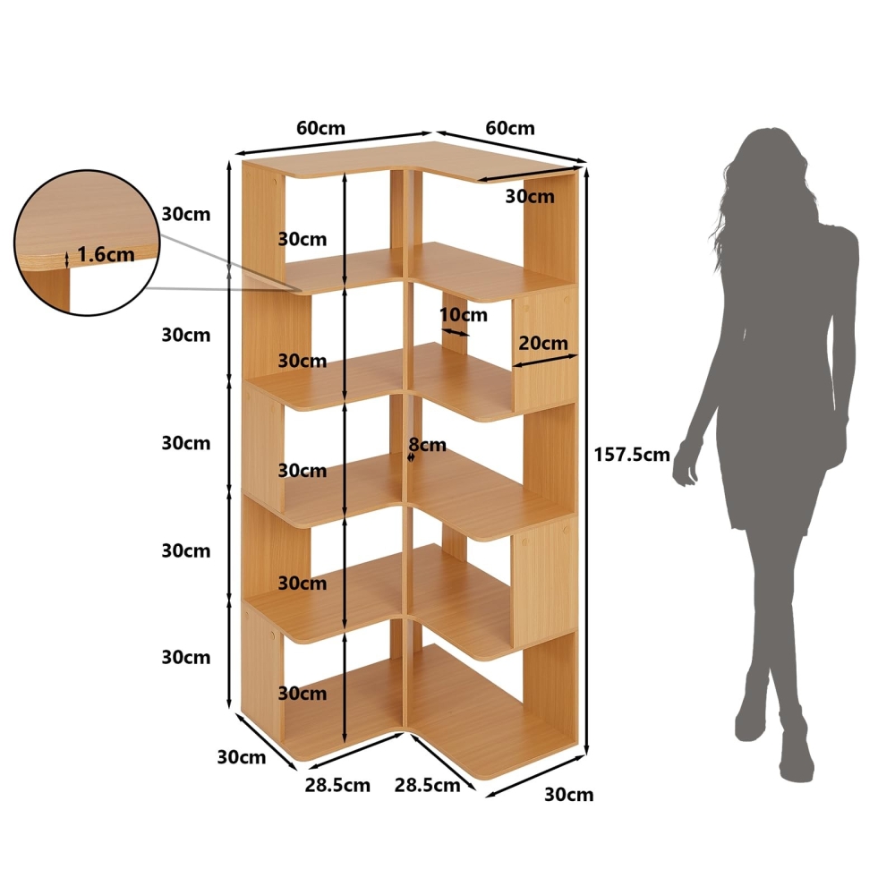 稳定:这个书架角尺寸为L-60cm x W-60cm x H-157.5cm,尺寸与墙壁非常贴合。天然实木光学元件