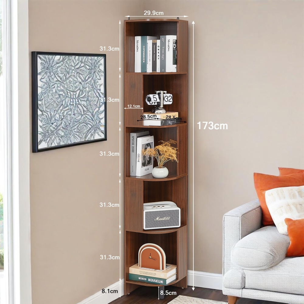 节省空间:90°角的紧凑型角木书架。非常适合狭窄的角落——173厘米