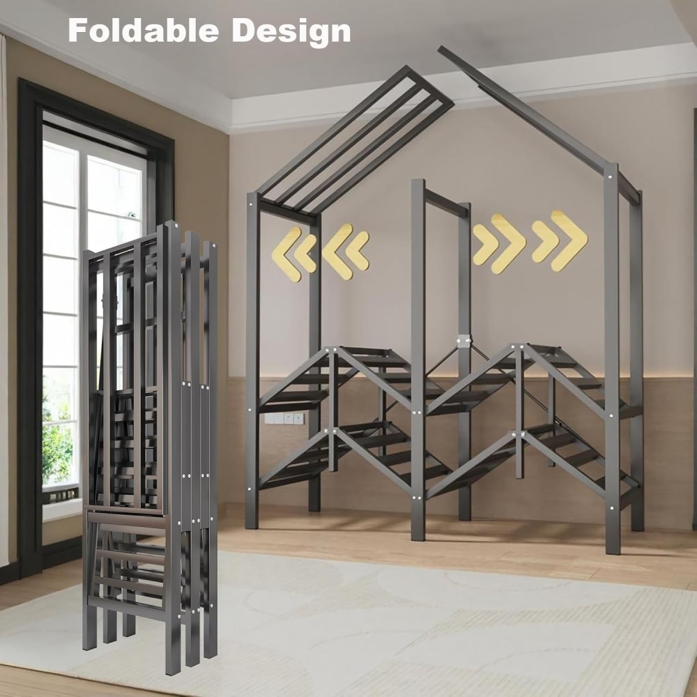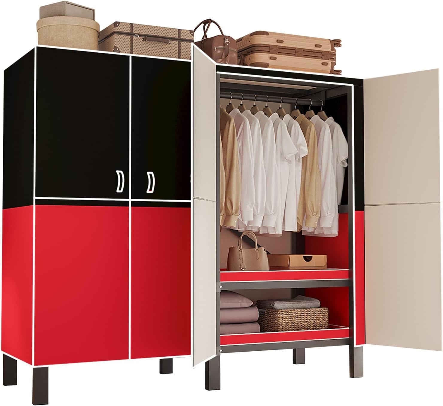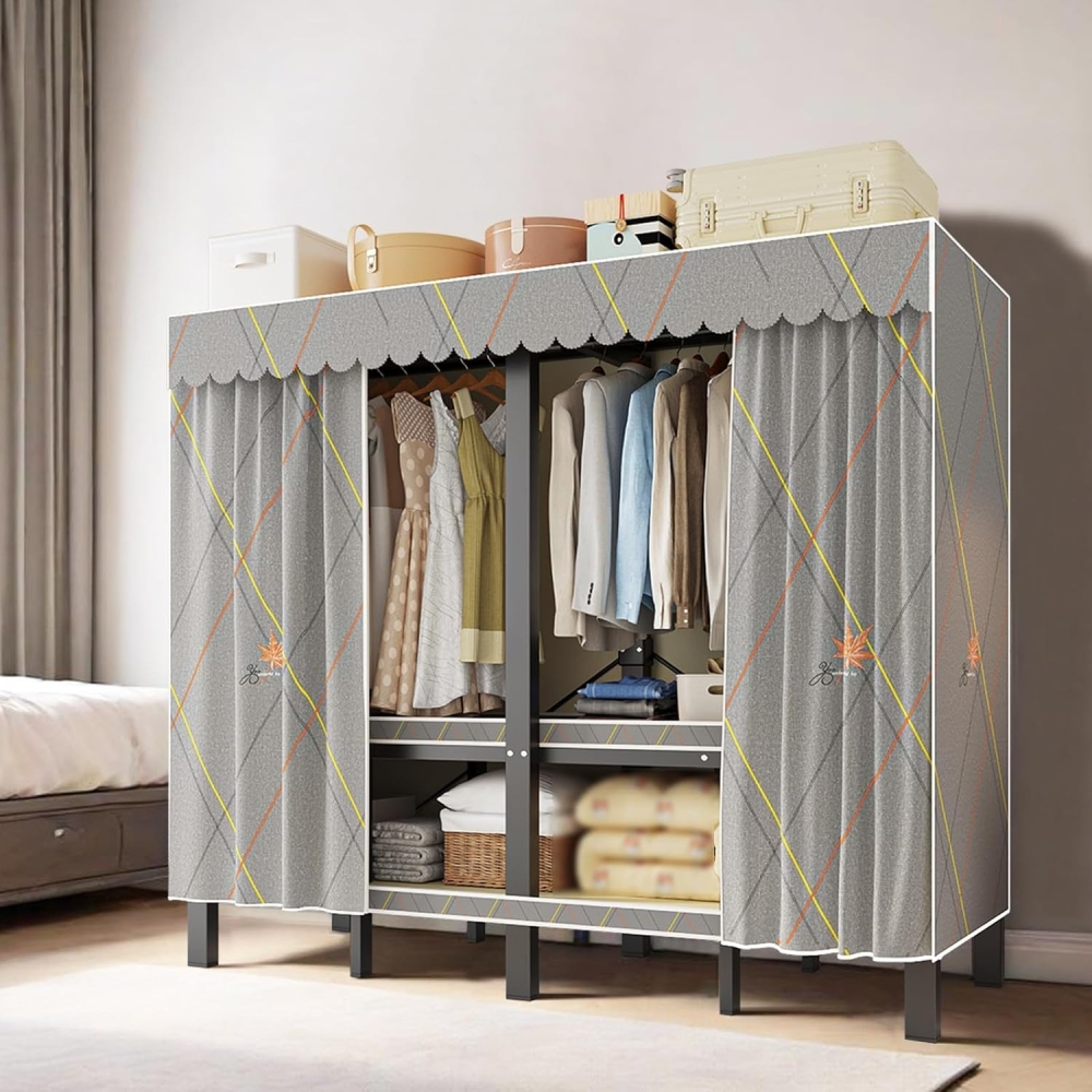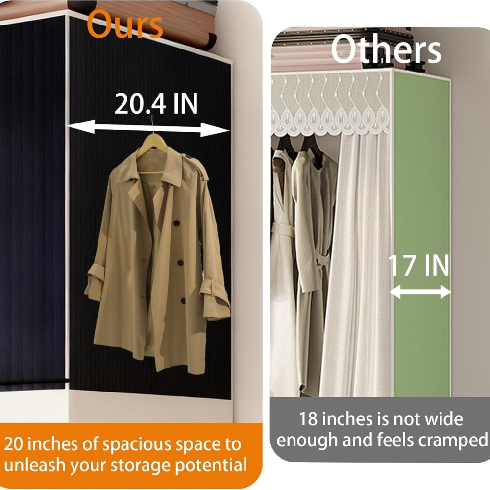 【带盖衣架】便携式衣柜。我们的衣柜可折叠,无需工具即可轻松安装,方便收纳。其坚固的框架稳定不易变形,是租房者、宿舍、公寓、搬